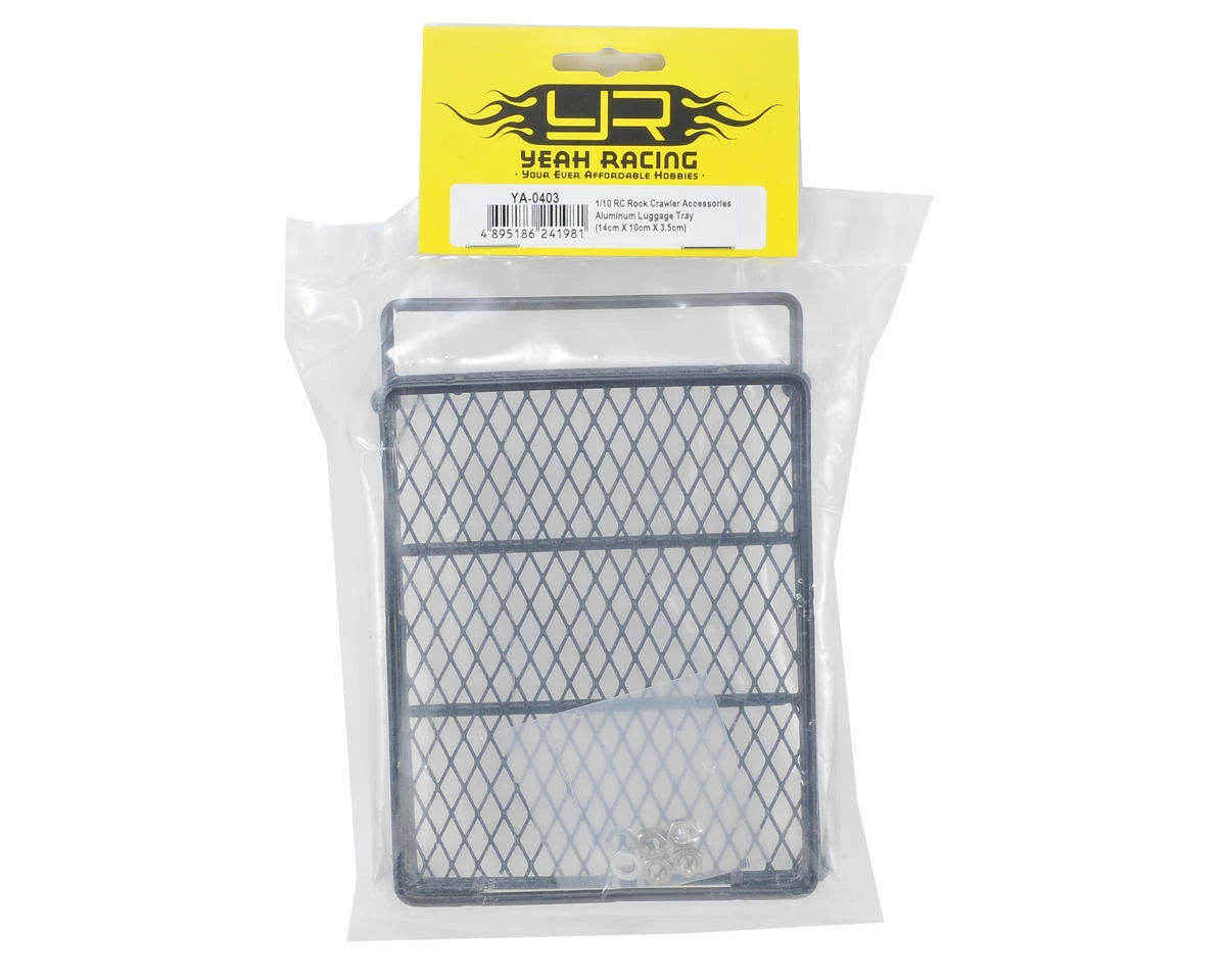 This Yeah Racing 1/10 Scale Metal Mesh Roof Rack Luggage Tray “Type C” is 14cm long, 10cm wide and 3.5cm deep (5.5×3.9×1.4″) and is made from durable metal, great for your crawler or scaler needs.