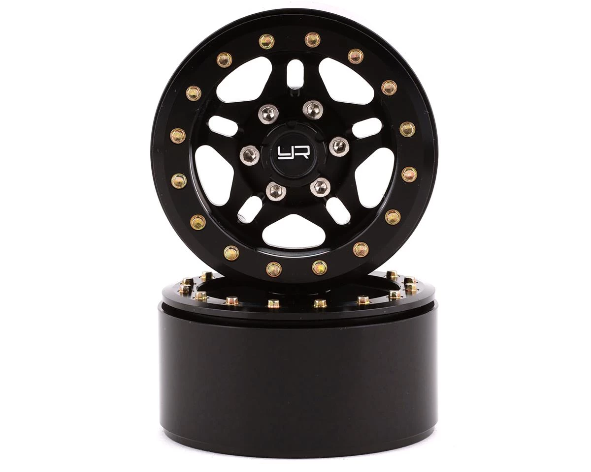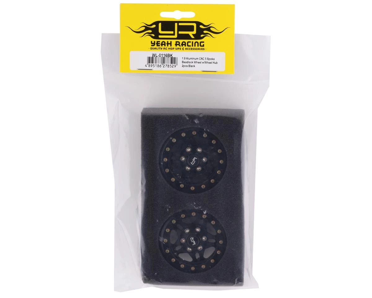 The Yeah Racing 1.9″ Aluminum 5-Spoke Beadlock Wheels with 12mm Hex feature a 5 screw clamp that will firmly hold your tires in place. A stylish aluminum beadlock ring uses a 16 lug pattern for extreme scale looks. These wheels are compatible with most standard 1.9 tires and are ready to be mounted to your crawler. Package includes two beadlock wheels.