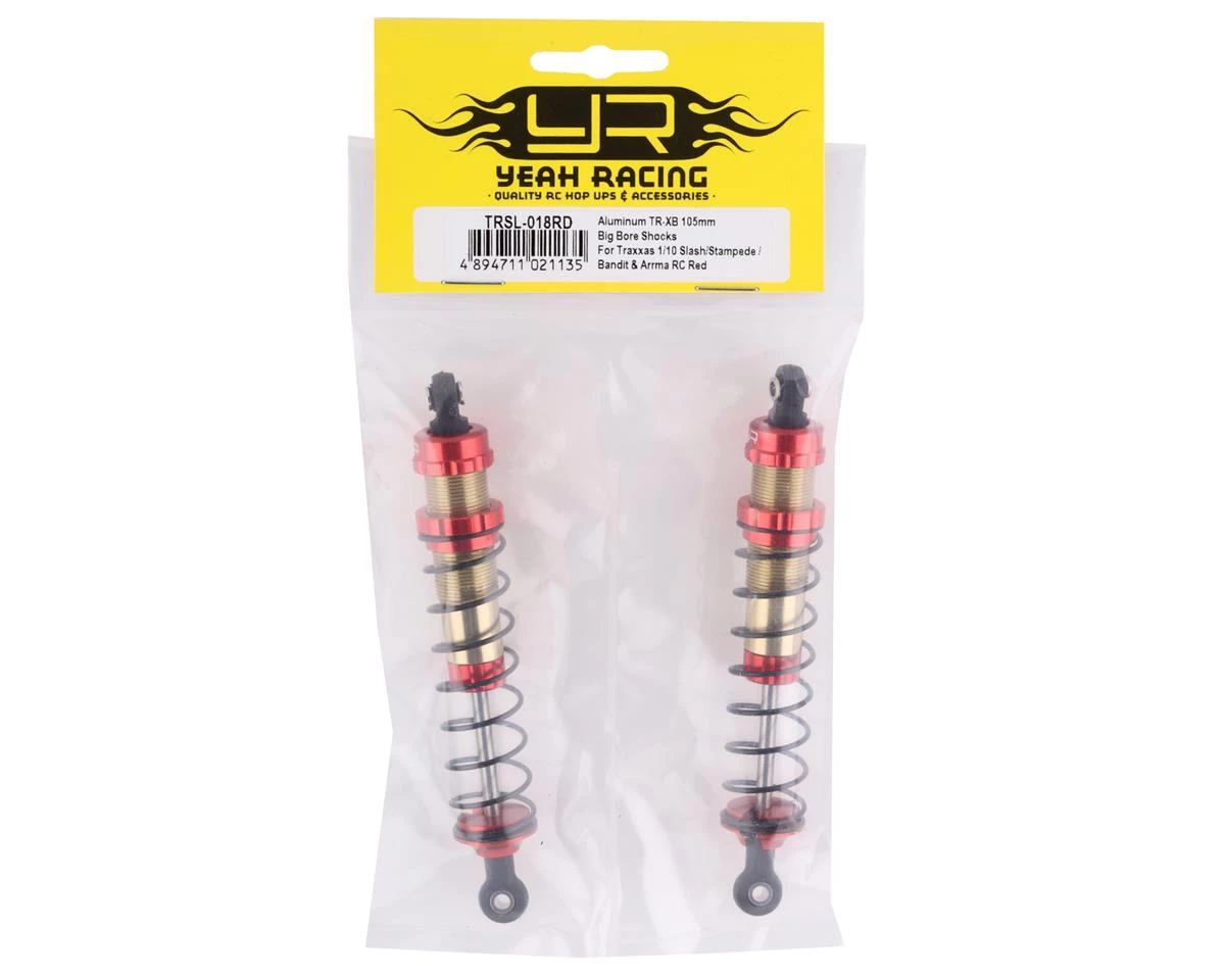 Yeah Racing 105mm Aluminum TR-XB Big Bore Shocks. These optional shocks feature threaded bodies and are intended for the Traxxas Stampede, Slash or Bandit. Package includes two assembled shocks.