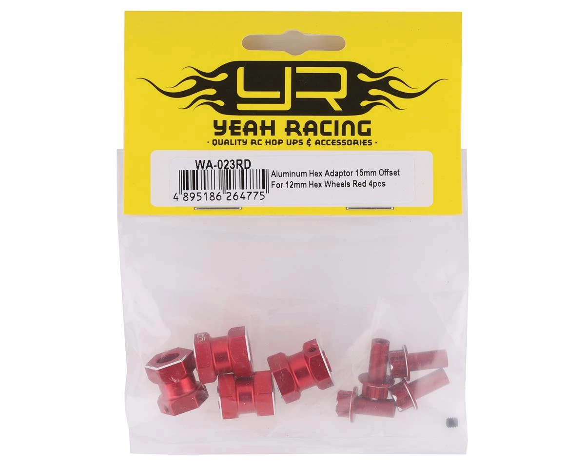 Yeah Racing 12mm Aluminum Hex Adaptors. These optional hexes are intended to add track width to your RC rock crawler. With a wider track width, you can also increase the chassis flex due to a leverage effect of being able to put more force on the outer wheel. This translates to more grip during climbing. Package includes four hex adapters with grub screws.