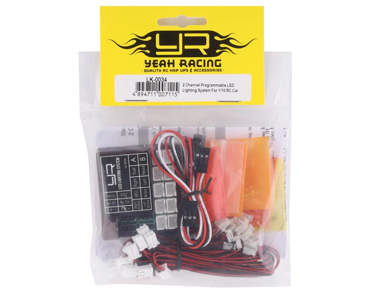 Yeah Racing 2-Channel LED Light Kit with Light Controller. This optional light set features a sturdy yet light weight case, that is easy to install into any 1/10 chassis or body. The main benefit of this light controller is that the LED bulbs are interchangeable through the connector. Twenty bulbs are included to allow for you to get the most out of this light controller.