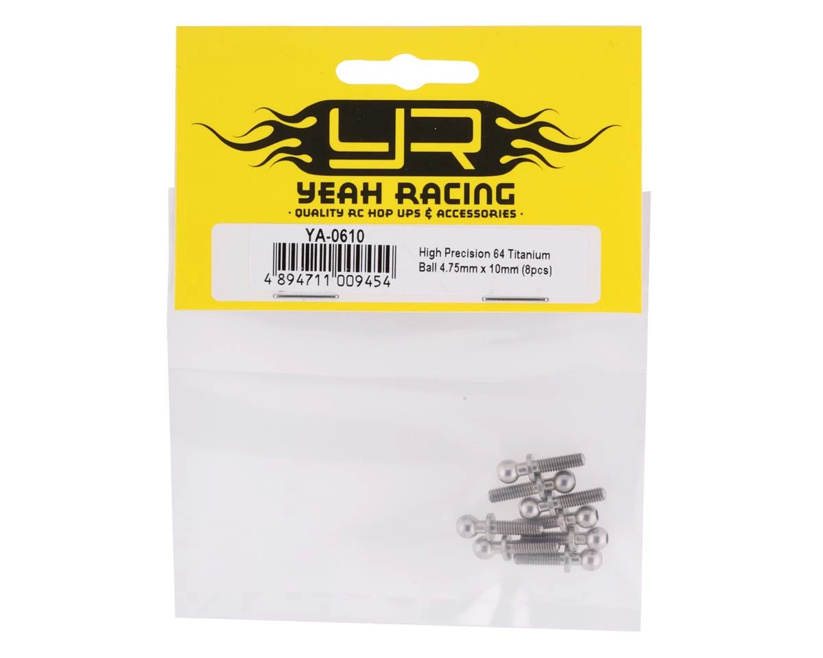 Yeah Racing 4.75x10mm Titanium Ball Studs. These optional ball studs are a great option for a strong, lightweight, upgrade. Package includes eight ball studs.
