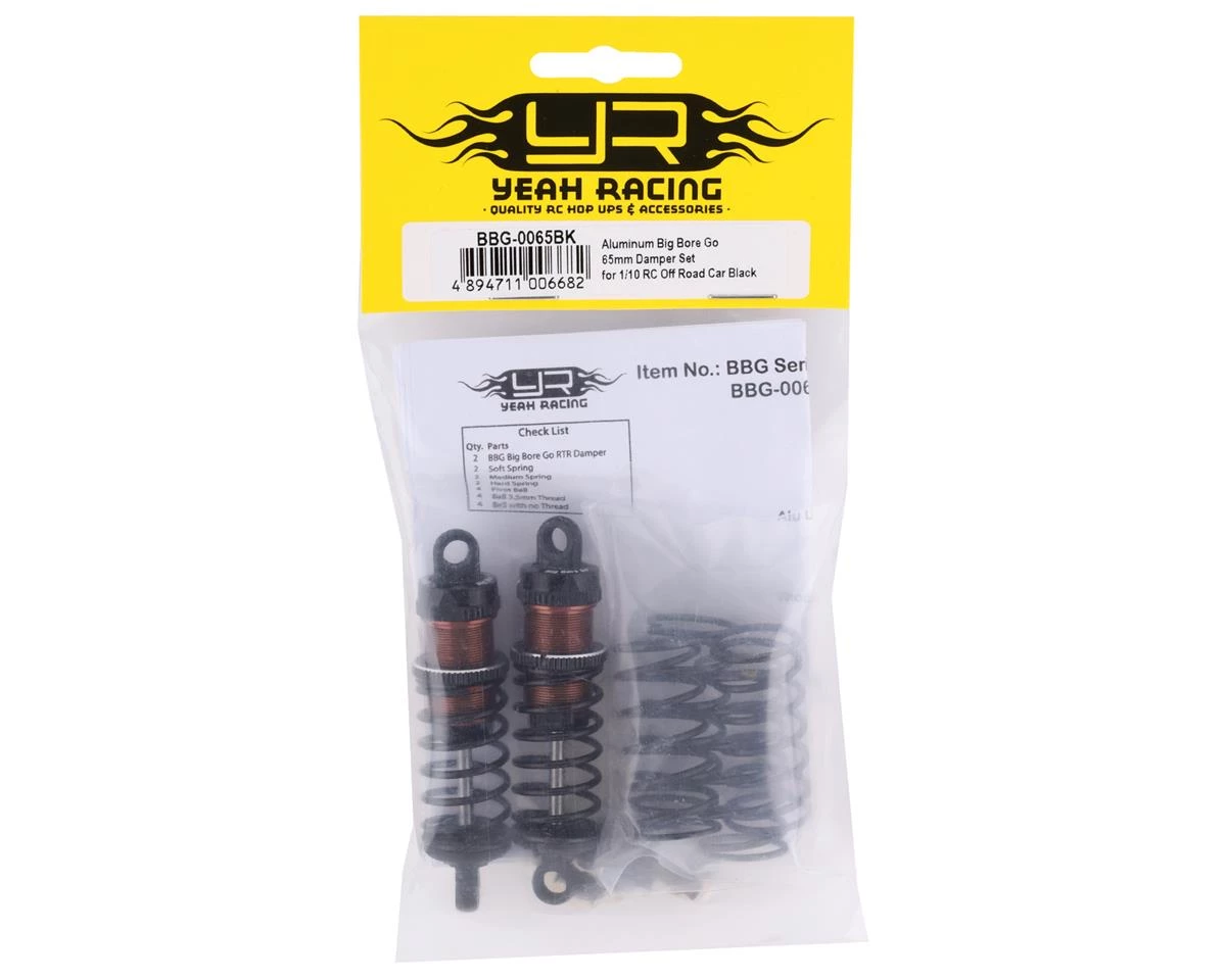 The Yeah Racing Aluminum Go Big Bore Off-Road Shocks are a great option for those looking to add big bore shocks to their 1/10 sized buggy. These shocks are available in a variety of lengths, and include different spring rates to fine tune your suspension for optimized handling.