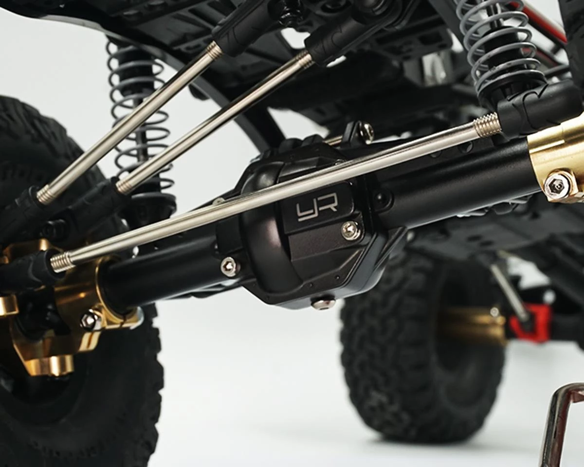 Yeah Racing Axial SCX10 II Aluminum Upgrade Kit. This optional upgrade kit is a great way to add durability and style to the Axial SCX10 II. Using this kit will allow you to add front and rear aluminum axle housings, stainless center skid plate, front and rear stainless driveshafts and a full set of stainless links. These will greatly improve durability over the stock components and lead to a better trail experience. Package includes one center skid plate, two axle housings, two driveshafts, one link set.