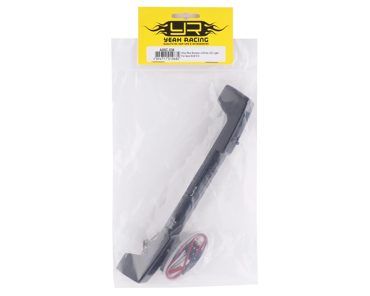 The Yeah Racing Axial SCX10 III Aluminum Rear Bumper w/LEDs is a great option to add scale realism and durability to your crawler. Made from aluminum and anodized black for a clean finish. The included LED lights feature a JST connector for ease of installation. Package includes one rear bumper, two D-rings, two mounts, one LED harness and hardware intended for the Axial SCX10 III.