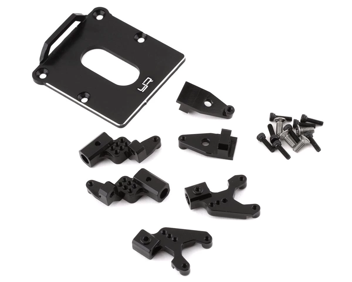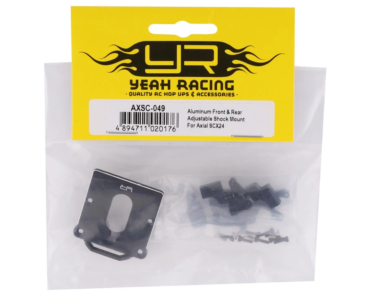 Yeah Racing Axial SCX24 Front and Rear Adjustable Shock Mounts with ESC Plate. These optional shock mounts, paired with the ESC mount, will allow for a stiffer chassis to increase suspension efficiency. Package includes four shock mounts, one ESC mount with brace and hardware intended for the Axial SCX24