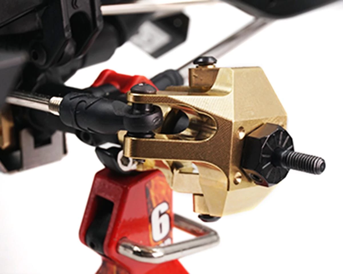 Yeah Racing SCX10 II High Mass Brass Upgrade Set. This optional brass upgrade set is a great way to add low weight to your Axial SCX10 II. Using this set will allow you to add brass C-hubs, brass knuckles, brass differential covers and brass lockouts. These components will aid in performance while also increasing durability. Package includes two C-hubs, two knuckles, two differential covers and two lockouts.