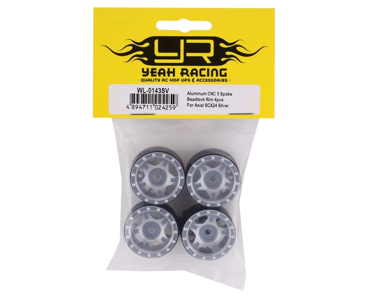 Yeah Racing SCX24 1.0″ Aluminum 5 Spoke Slotted Beadlock Wheels. These optional wheels are a great for adding scale performance to the Axial SCX24. Package includes four beadlock wheels with hardware.