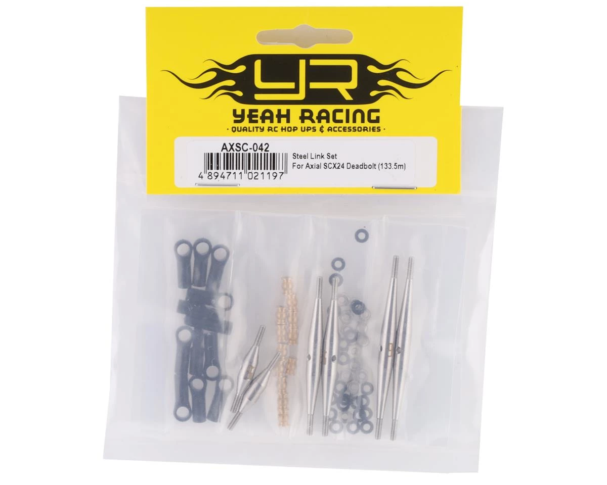 The Yeah Racing SCX24 Deadbolt Steel Link Set is a great way to increase suspension precision. Compatible with any 133.5mm wheelbase SCX24, these links will improve suspension stability and let all the dampening happen with the shocks!