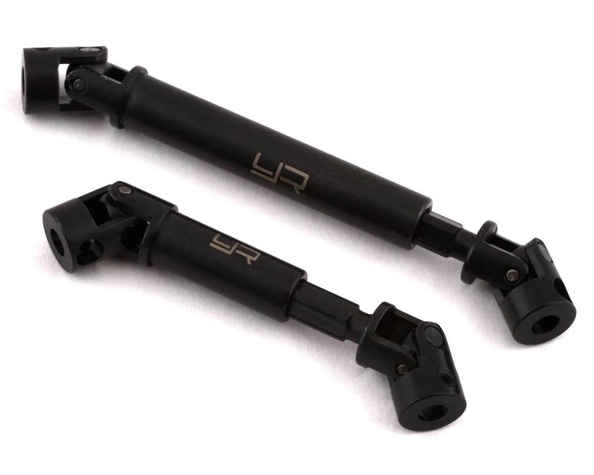 Yeah Racing SCX24 Jeep Steel Center Driveshafts are a heavy duty upgrade for your C10 or Jeep trucks! These driveshafts improve durability and and lifespan compared to the stock plastic parts.Â