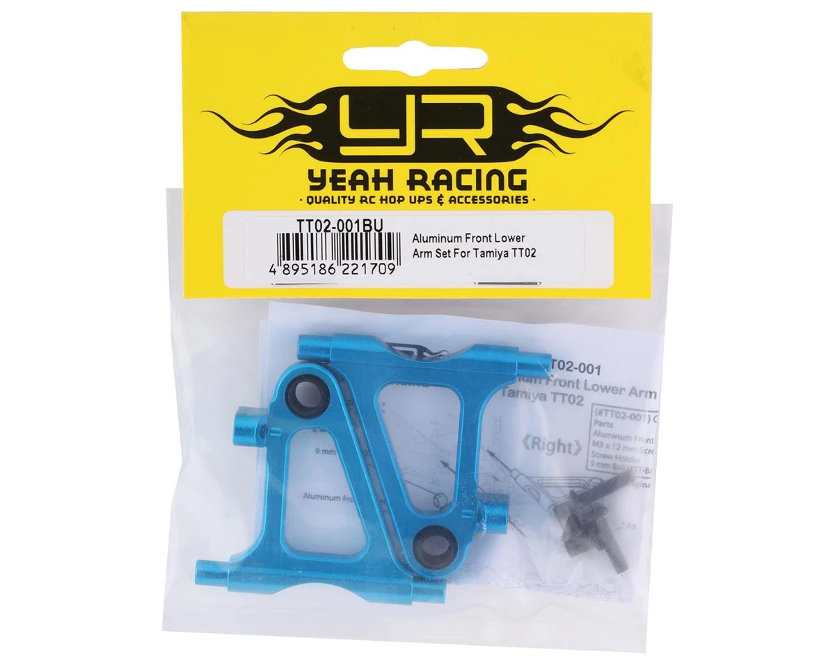 Yeah Racing Tamiya TT-02 Aluminum Front Lower Suspension Arms. These optional suspension arms were designed to improve steering feel and stability in the Tamiya TT-02 chassis. Package includes two front lower suspension arms with hardware.