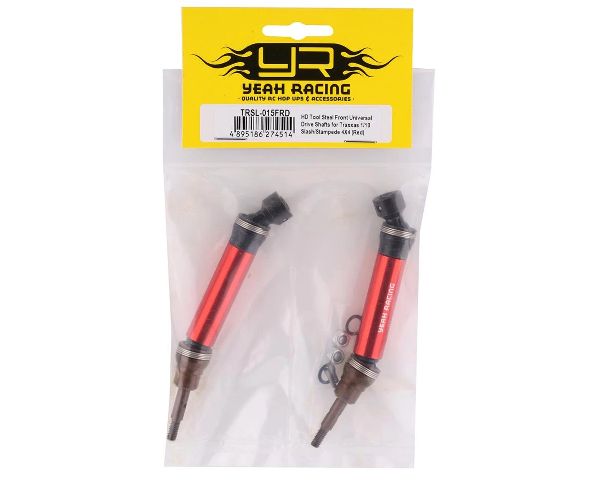 The Yeah Racing Traxxas Slash/Stampede 4×4 HD Steel Front Drive Shafts are a great option for adding strength and style to your ride. The axle section and shaft are made from tool grade steel and the outer sleeve is made from aluminum to keep the weight low. These features allow for a great balance between weight and strength. Package includes two assembled drive shafts intended for the Traxxas Slash 4×4 or Stampede 4×4.