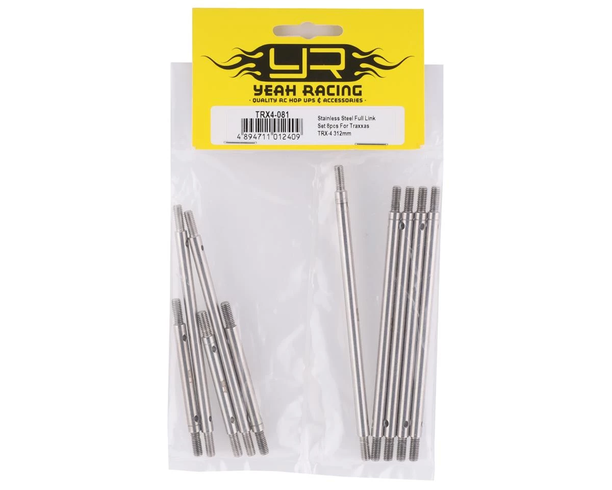 Yeah Racing Traxxas TRX-4 312mm Stainless Steel Linkage Set. This optional link set is great for adding durability and rust prevention to your Traxxas TRX-4. Made from stainless steel, these links feature an indicating assembly lines and are easily adjusted using the drilled hole in the link. Package includes ten links.