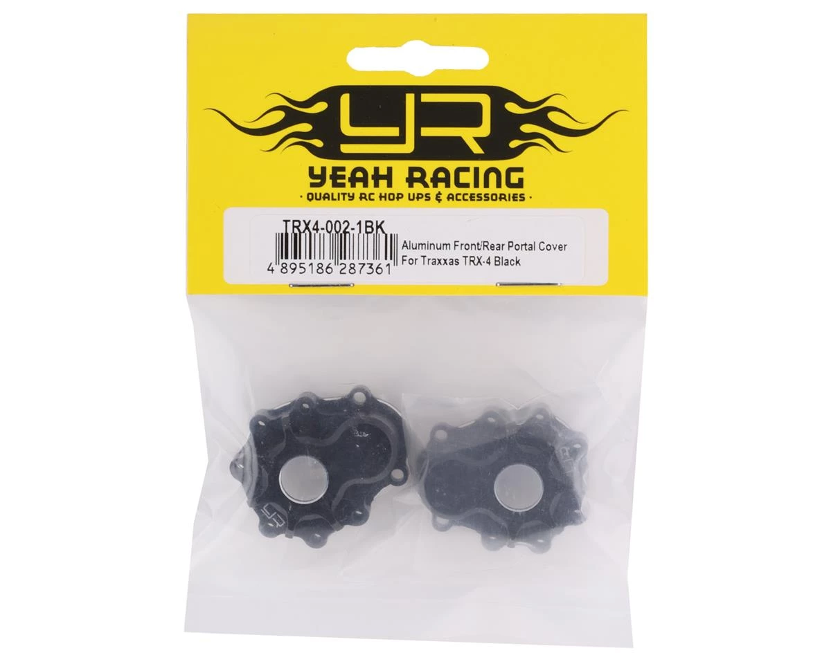 Yeah Racing Traxxas TRX-4 Aluminum Front/Rear Outer Portal Cover. These optional portal covers are great for adding a small amount of low end weight and increasing durability in the Traxxas TRX-4 and the TRX-6. Package includes two portal covers.