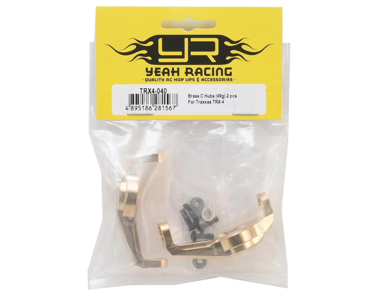 The Yeah Racing Traxxas TRX-4 Brass C Hubs are a direct replacement for the stock parts (TRA8232). These machined brass parts will increase strength and improve durability, as well as adding 49 grams of unsprung weight for improved overall performance. Package includes two c hubs.Â