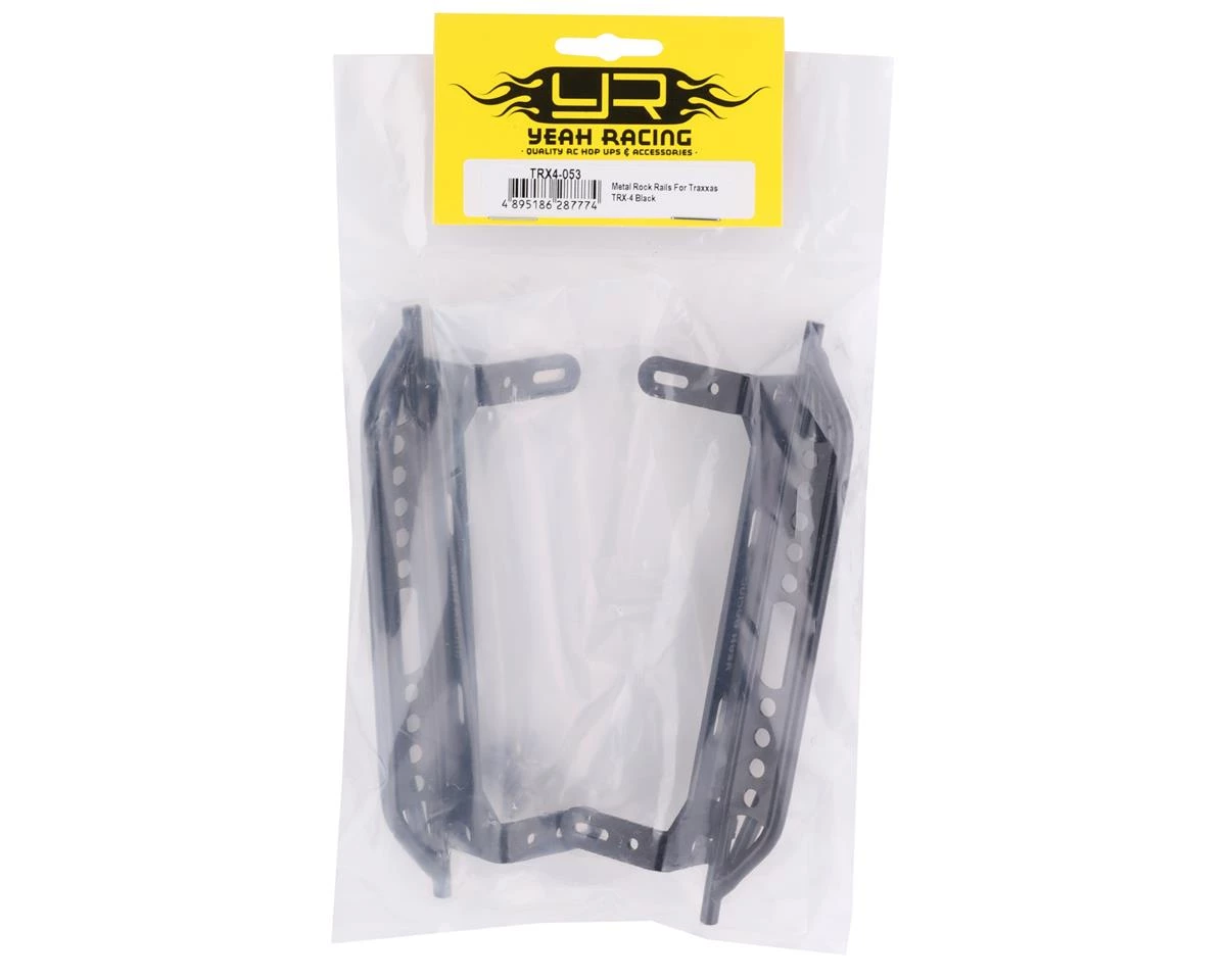Yeah Racing Traxxas TRX-4 Steel Rock Sliders. This optional set of rock sliders is great for protecting your Traxxas TRX-4 over rocks and during a roll over. Package includes two rock sliders and hardware.